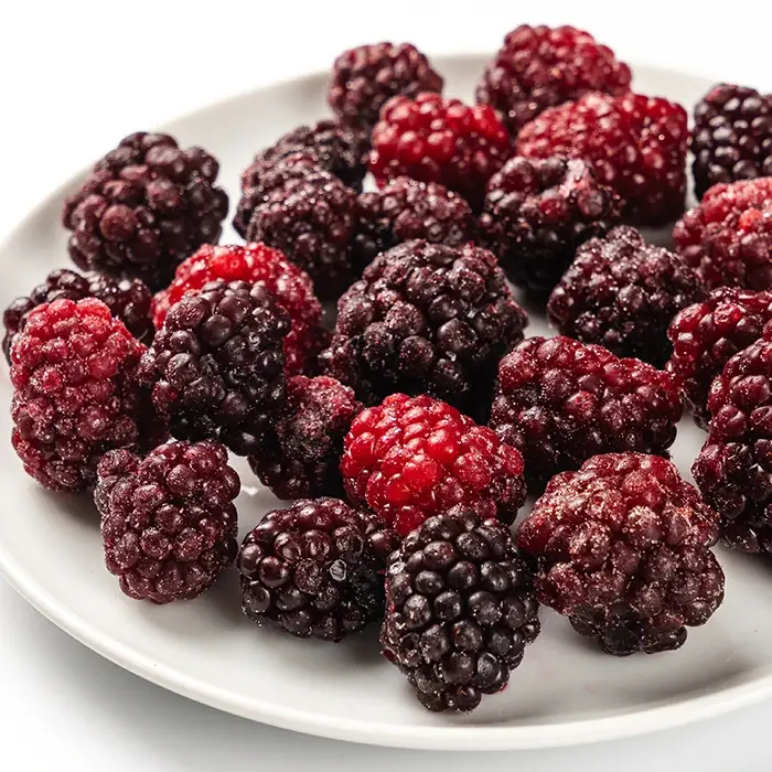 Замороженные цельные ягоды ежевики в упаковке по 2,5 кг.