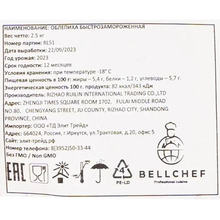 Облепиха Bellсhef, 2,5 кг