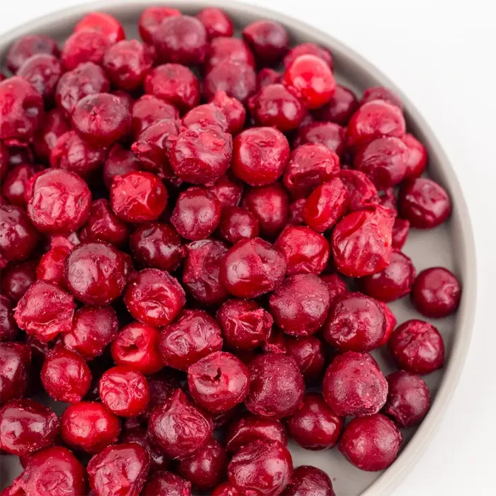 Отборная вишня имеет насыщенный кисло-сладкий вкус, очищена от косточек.
