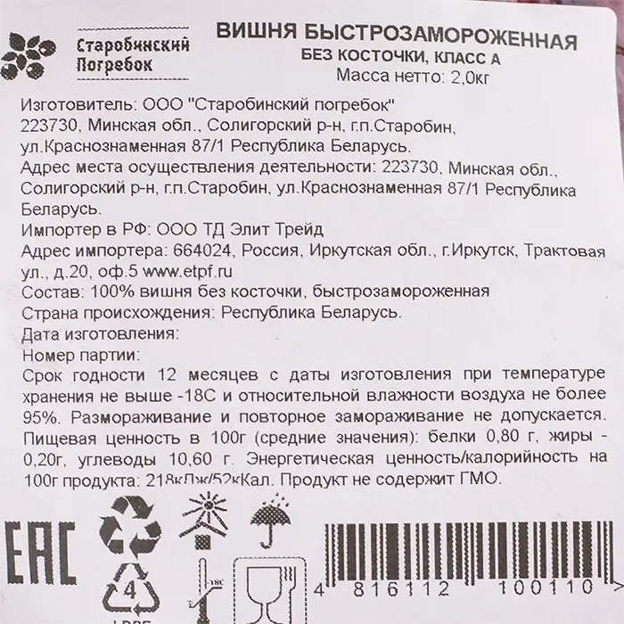 Шоковая заморозка — это технология быстрой заморозки, которая помогает сохранить питательные свойства и естественную рассыпчатость ягод.