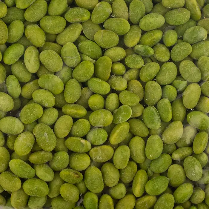 Соевые бобы, очищенные от стручков, имеют ярко-зеленый цвет, плотную, сочную и упругую текстуру, нежный сливочно-ореховый вкус со сладковатыми нотами и свежий травянистый аромат.