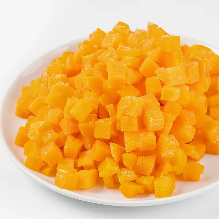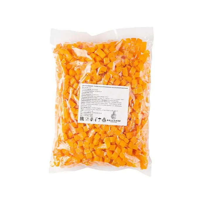 Тыква, нарезанная мелкими кубиками и замороженная - яркий овощ в удобном формате! Облегчит и ускорит приготовление любимых блюд.