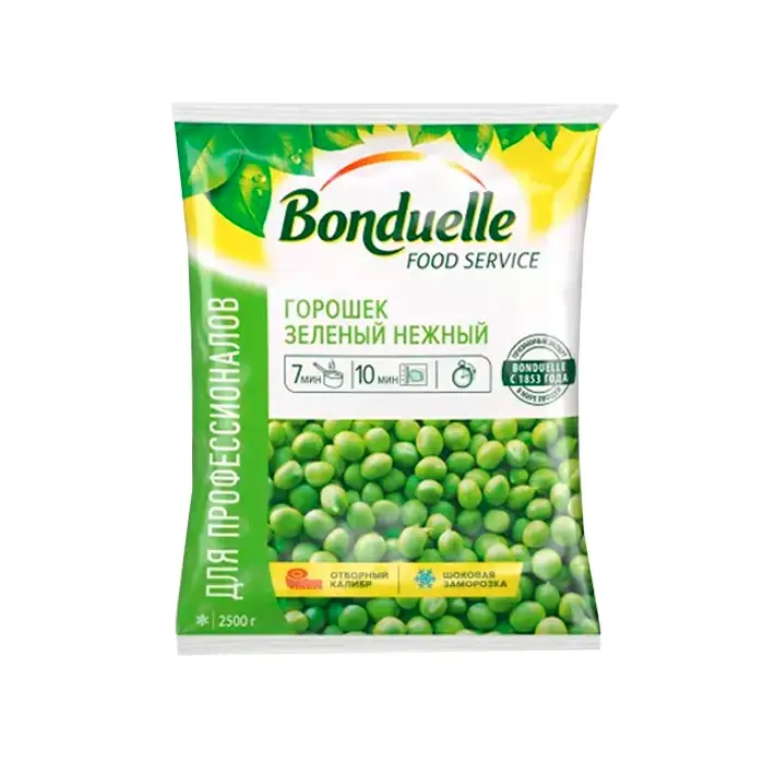 Зеленый горошек имеет нежную и упругую текстуру, ненавязчивый вкус с тонкими ореховыми нотками.