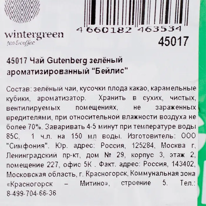 Чай зеленый Бейлис Gutenberg, 500 г