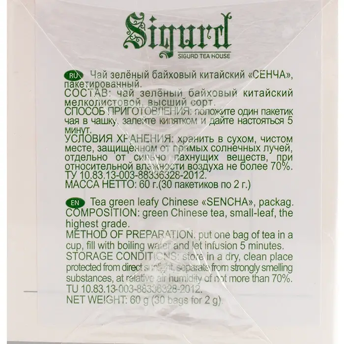 Чай зеленый Sencha Sigurd, 30 пакетиков по 2 г