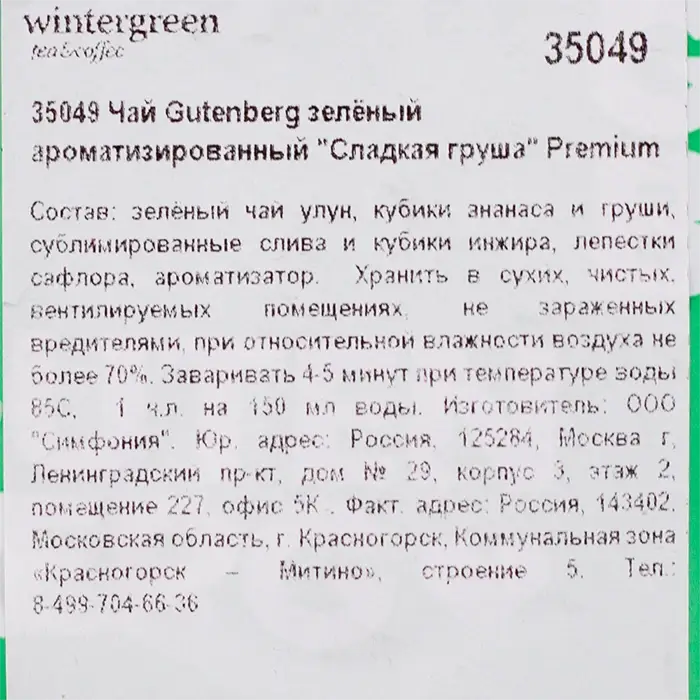 Чай зеленый Сладкая груша Премиум Gutenberg, 500 г
